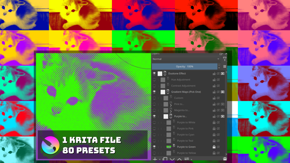 Duotone Photo Effect Customizable Template (80 Gradient Map Presets) for Krita